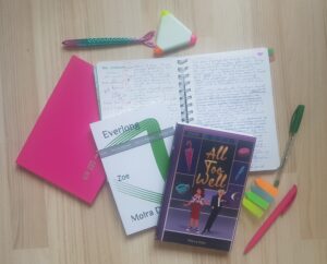 A veces, puede haber muchísimas notas, como me pasó cuando empecé con las tramas de los libros de Everything’s Fine. Lo mismo pasó con The Last Summer. Y ahora que lo pienso, también fue lo mismo para The Five. Entonces, en estos casos, tenía un cuaderno aparte (no completo) con notas y con lo que iba a los cafés era una versión muy resumida — o muchas fotos sacadas con mi teléfono que podía revisar.
